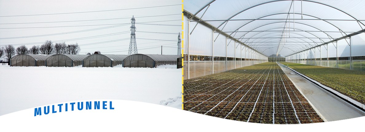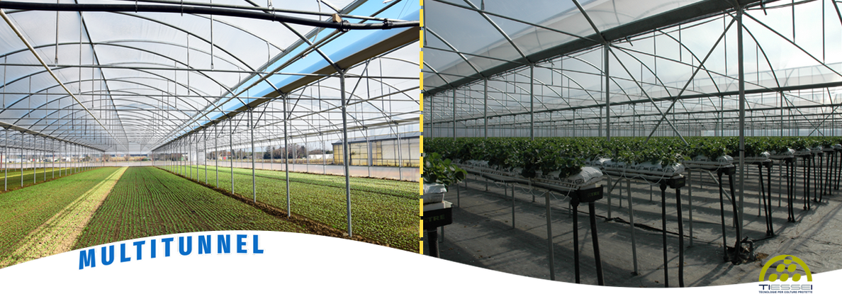 La struttura del multitunnel nasce dalla sempre maggior richiesta di strutture funzionali ed al tempo stesso più economiche, essenziali per le colture a minor reddito. La necessità di sfruttare al massimo gli spazi coperti avendo un ottima luminosità interna, ci ha portato a progettare un modello di multitunnel con pareti laterali verticali di buona resistenza e di facile montaggio.